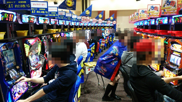 朝イチは、20円パチスロと1円パチンコが人気となっており、期待に満ちた顔で遊技をはじめていた。