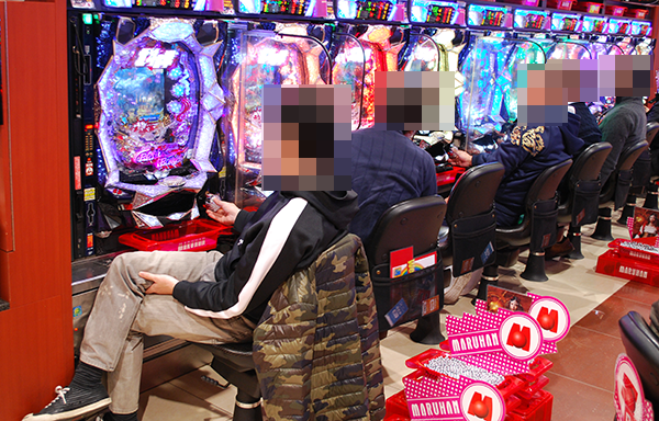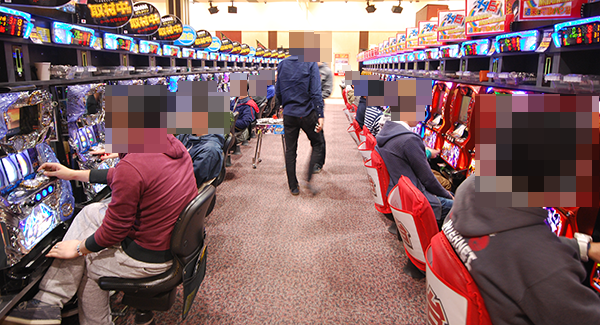 4円パチンコは「CRスーパー海物語IN JAPAN」が満席で、空き台を待つプレイヤーもいるほどの盛況ぶり。笑顔のプレイヤーも多く、ひときわ活気が感じられるシマとなっていた。