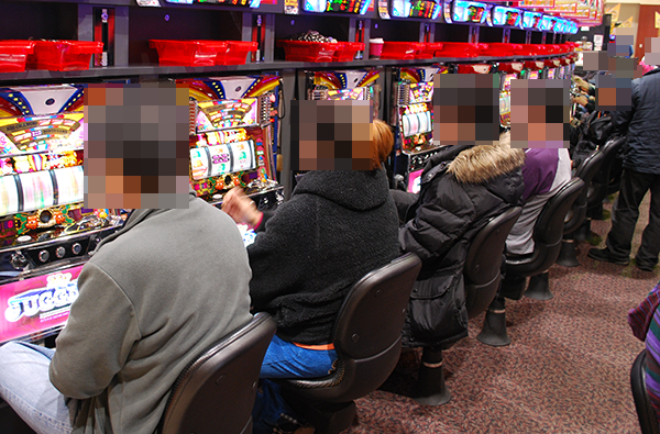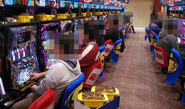 20円パチスロに目を移すと、朝と同様に「パチスロ北斗の拳 強敵」がもっともにぎわっていた。