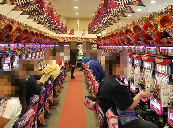 14時をまわった頃のパチスロコーナーは、定番のジャグラーシリーズを中心に盛り上がっていた。