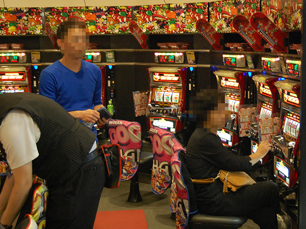 ひときわ盛り上がりが大きかった機種は、「ジャグラーガールズ」。機種の性能を最大限に発揮しているプレイヤーが、周囲の注目を一身に集めていた。