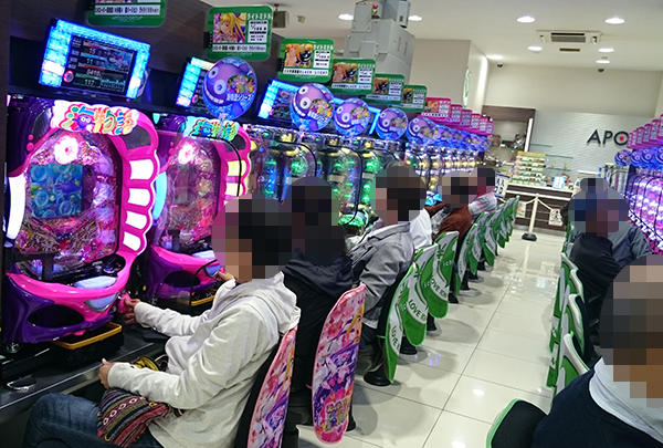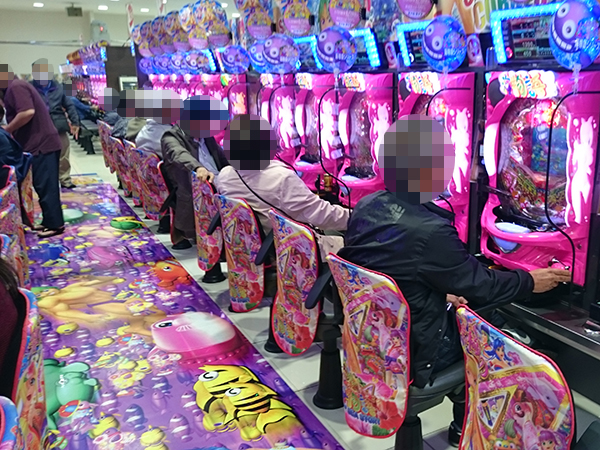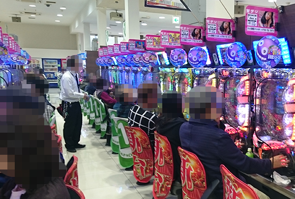 たくさんのプレイヤーでにぎわう店内を見渡すと、パチンコ・パチスロの各シマに明るい雰囲気が広がっていた。