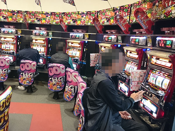 1000円/47枚パチスロは、「ニューアイムジャグラーEX」や「ジャグラーガールズ」などを中心に大盛り上がり。微笑ましいシーンを目にすることができ、プレイヤーたちはそれぞれ充実した時間を過ごしていることが伝わってきた。