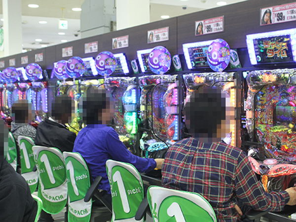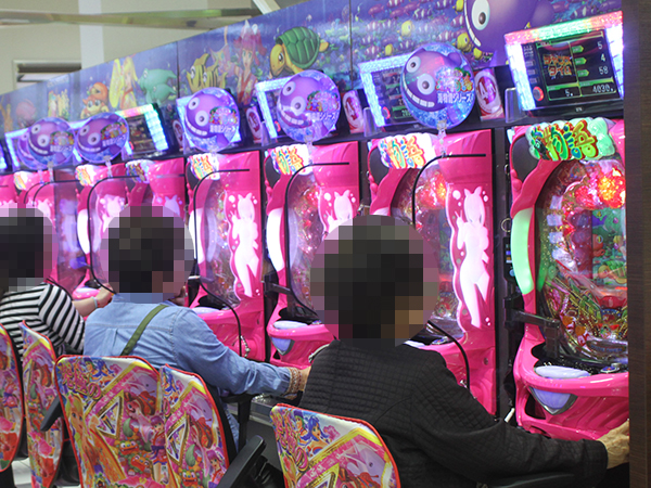 14時過ぎの500円/116玉パチンコでは、「CRスーパー海物語IN沖縄4」をはじめとした海物語シリーズにおいて、機種の性能を最大限に発揮したプレイヤーを目撃。シマ全体に華やかな光景が広がっていた。