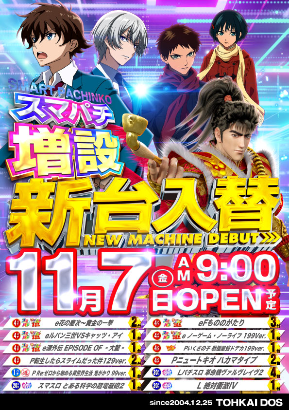 11/7(金)、新台入替🌈ご来店お待ちしております😉