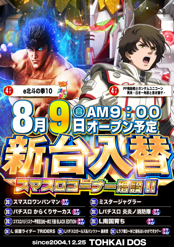 明日9日❗新台入替❗スマスロコーナーさらに増設🎉