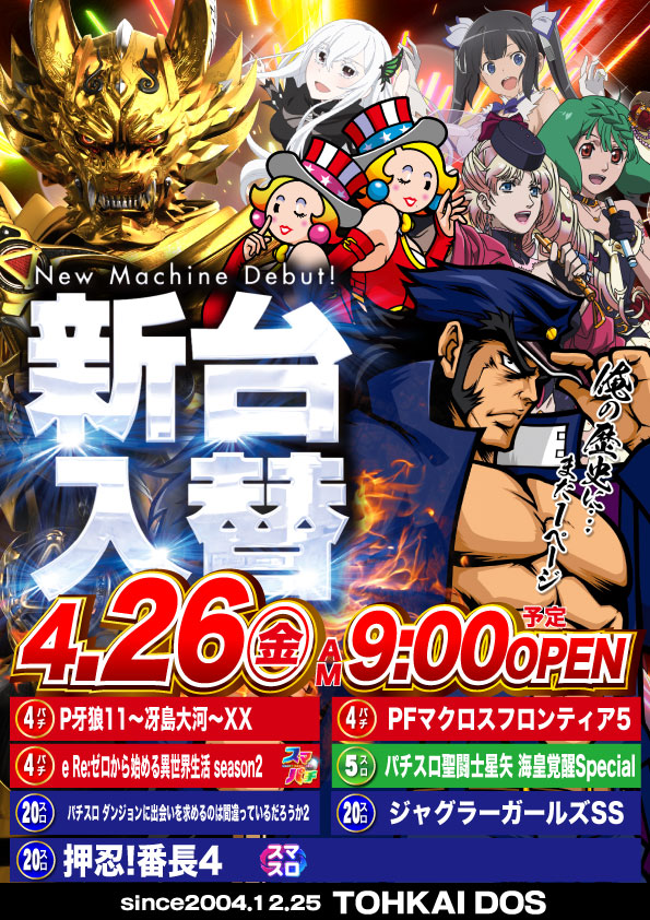 明日4月12日(金)新台入替🌈AM9:00OPEN(予定)🌈