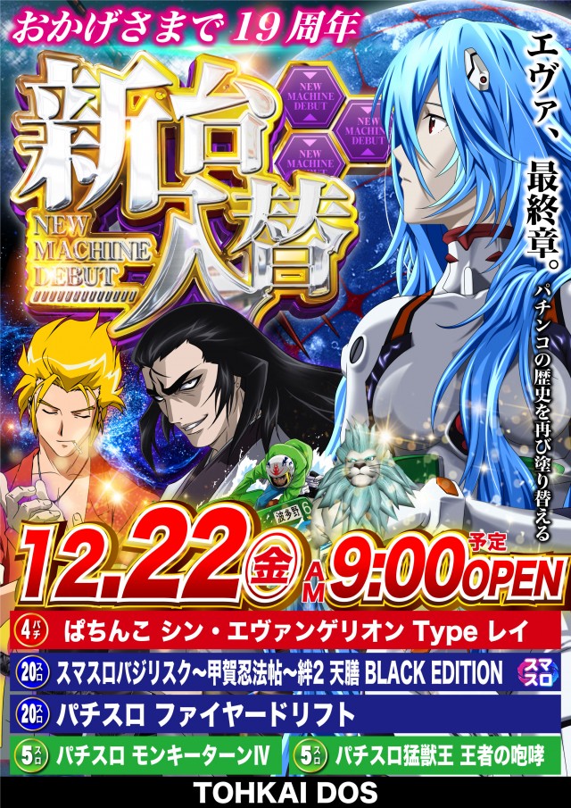 本日🌈新台入替🌈 全5機種導入❗❗エヴァ・天膳🚀