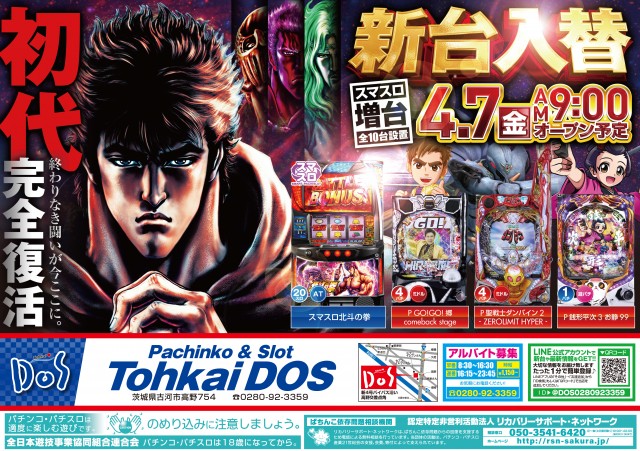 🌸週末はぜひDOSへお越しください🌸スマスロ北斗好評稼働中❗