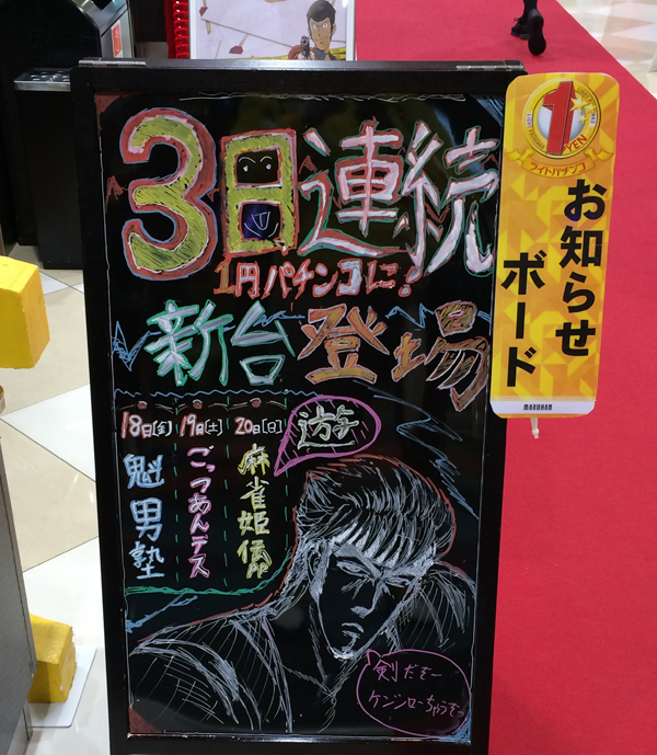 3日間連続で1円パチンコに新台が登場するなど、新鮮な面白さもあった「マルハン石岡店」。