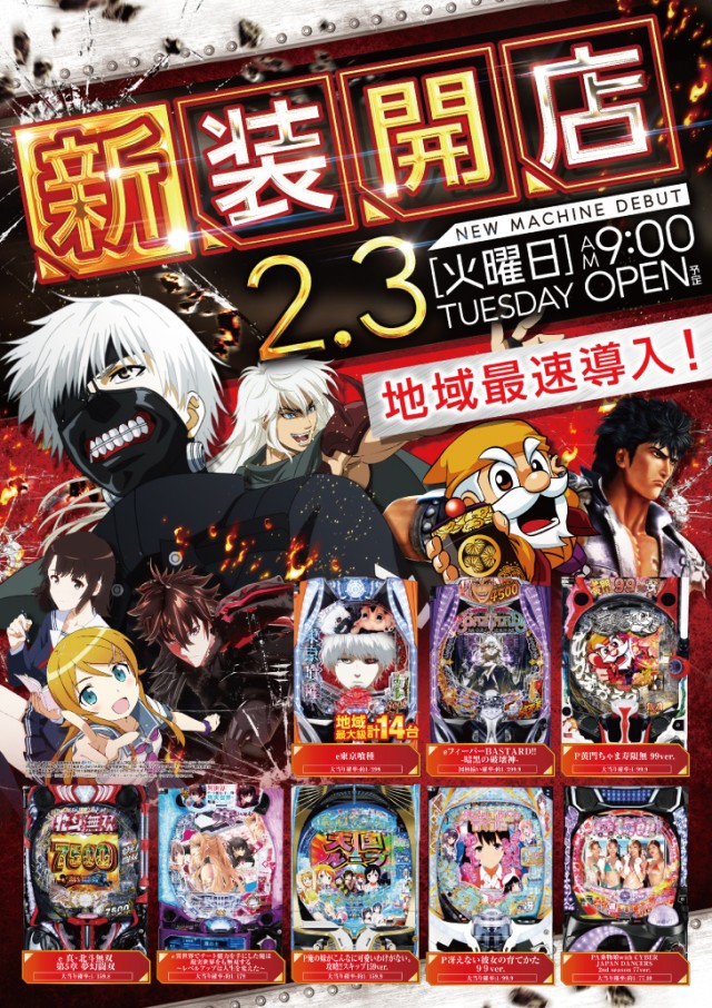 🌟🌟明日2月3日🌟🌟新装開店🌈最新台導入&喰種増台🌈