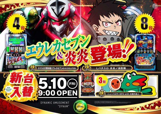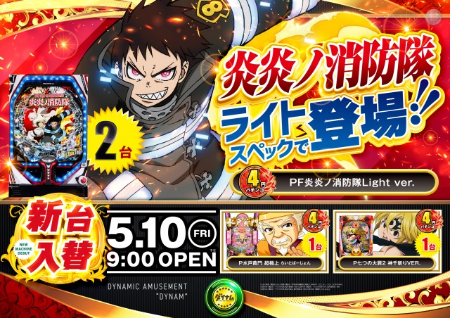 本日 5/10(金)新台入替!P/L炎炎ノ消防隊導入!