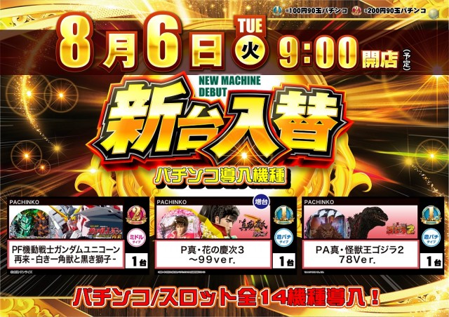 [パチ] 200円/90玉:40台 100円/90玉:200台 計240台 |
