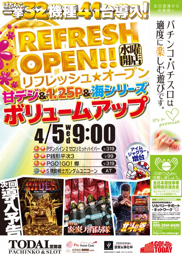 あすも9時開店!炎炎&ハーデス&北斗導入リニューアル!
