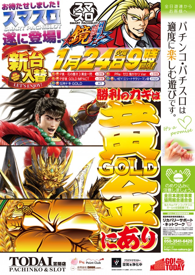 明日24日新装開店☆沖ドキ、慶次、牙狼のGOLD3本建て!