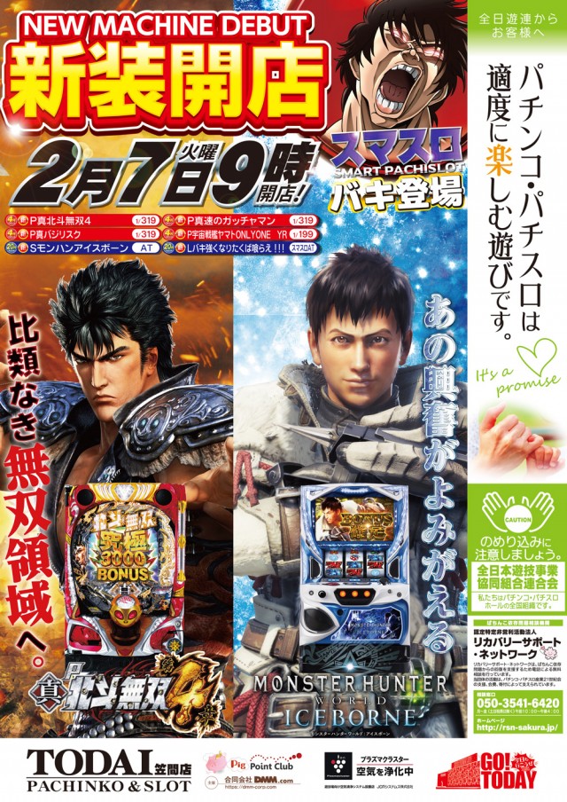 明日7日(火)9時☆新台入替!無双4、MHWアイス、バキ導入