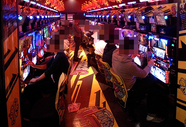 20円パチスロの「沖ドキ!」や「ミリオンゴッド-神々の凱旋-」、「アナザーゴッドハーデス」といった機種には笑顔のプレイヤーも多く、楽しめていることがひと目で伝わってきた。