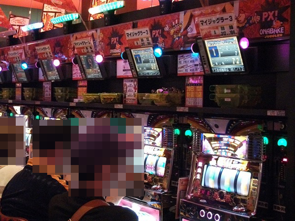 ボーナスタイプのジャグラーシリーズやハナハナシリーズのシマも楽しげな空間となっており、充実した表情でボーナスを消化しているプレイヤーが多数。