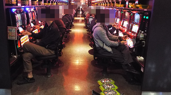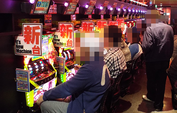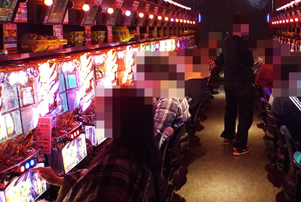 「沖ドキ!」やハナハナシリーズといった30φの機種にもプレイヤーの姿は多かった。