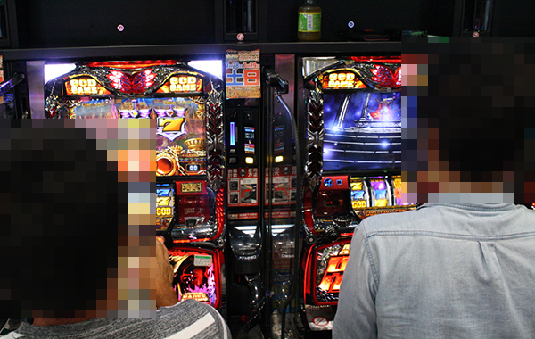 「ミリオンゴッド-神々の凱旋-」や「アナザーゴッドハーデス」も活況。鮮やかなパフォーマンスを披露するプレイヤーが多く、シマ全体に華やかな光景が広がっていた。