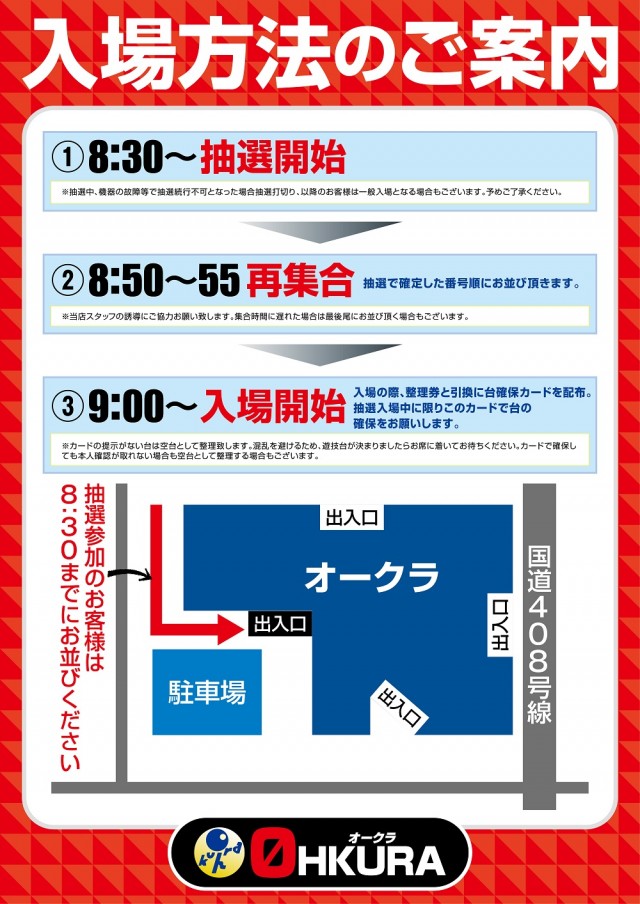 明日3O日9時OPEN!8:3O入場抽選予定!