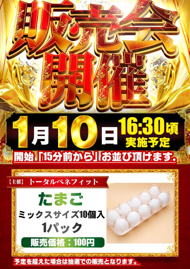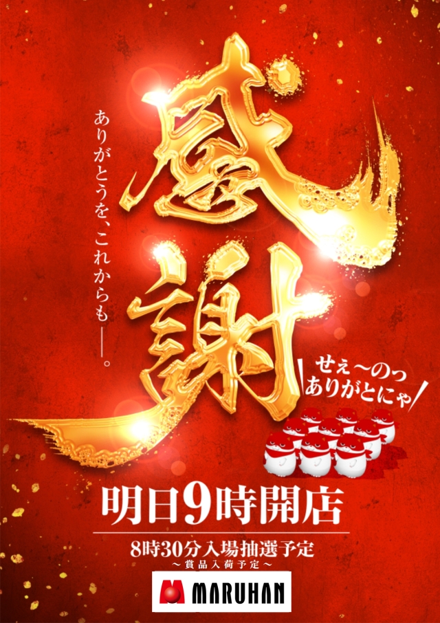 当日朝8:30までにお集まり下さい。お集まり頂いたお客様で抽選を行います。集合場所→当店駐車場 再整列→8:50頃 |
