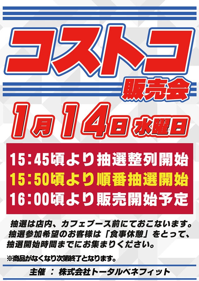 コストコ販売会実施予定