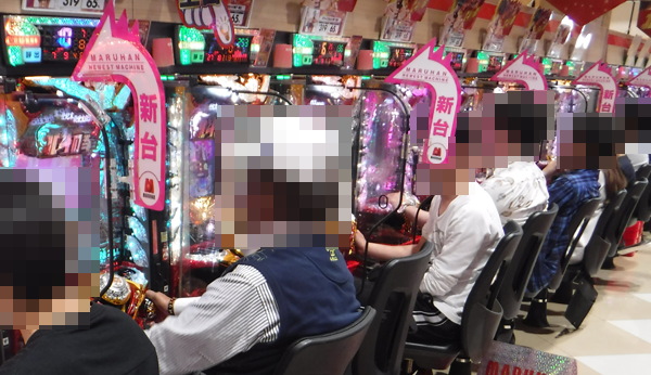 さまざまなシマでシャッターチャンスに遭遇。ビッグスクープの可能性を感じるシーンがあった。「マルハンつくば店」の一面はパチスロコーナーで決まりだろう。
