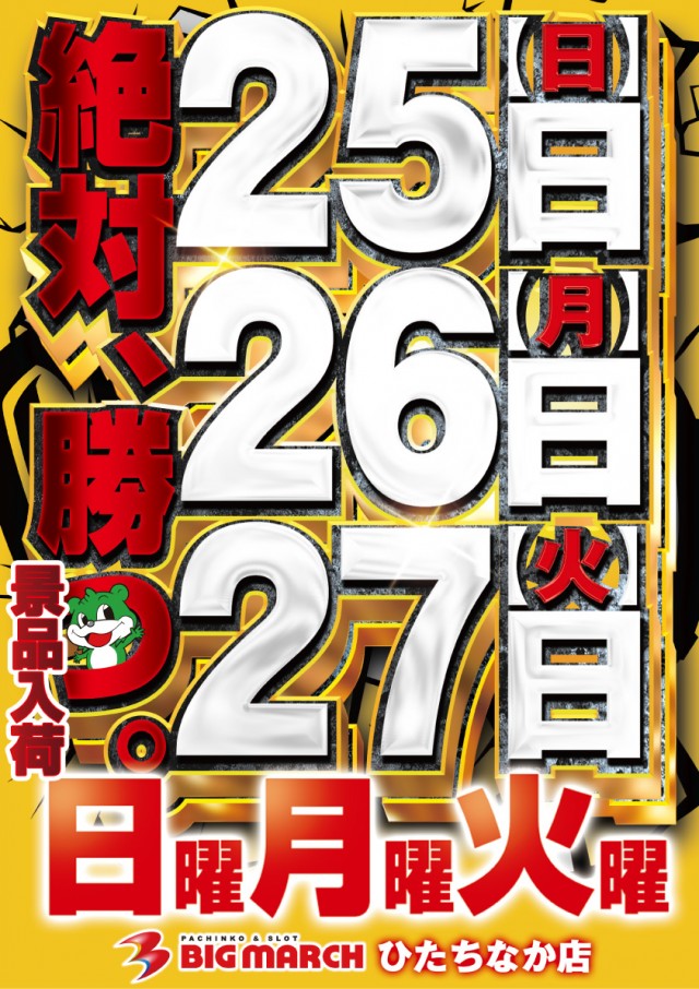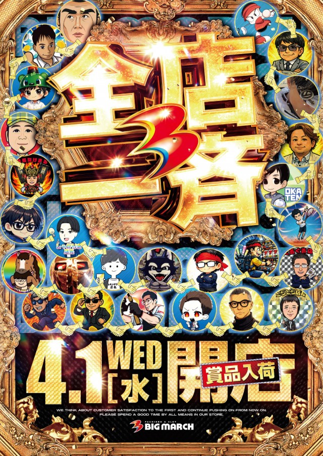 パチンコ&スロット:8:30までに立体駐車場1Fにて整列されたお客様を対象に入場抽選を行います。※抽選場所が変更になる場合がございます。 |