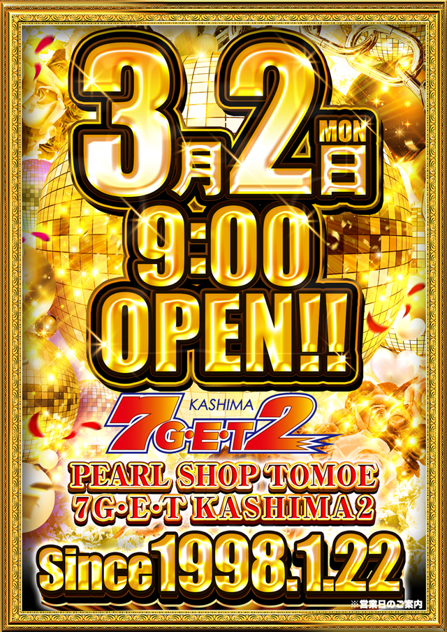 明日2月22日!9時開店!7GET鹿嶋2でお楽しみ下さい♪