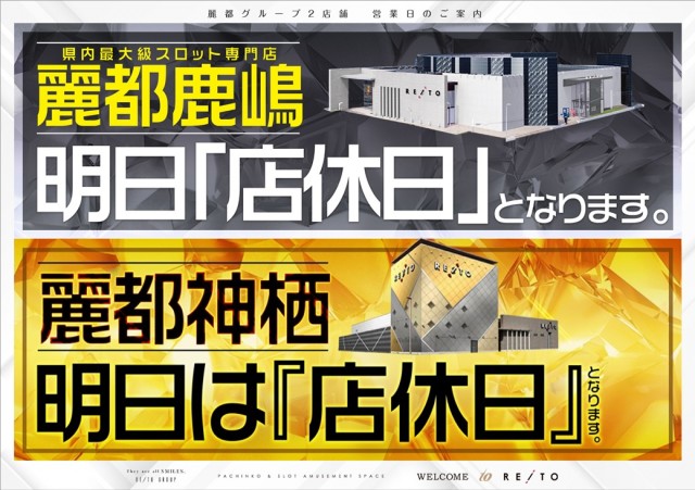 10月23日(木)麗都鹿嶋・神栖共にお休みとなります