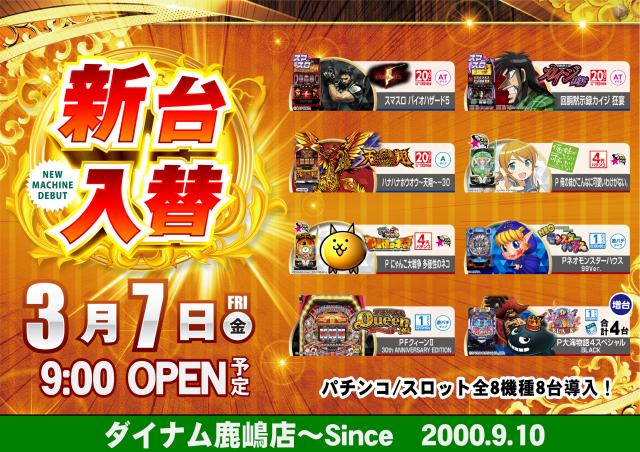 明日 3/7(金)新台入替_Lバイオハザード5全8機種導入!