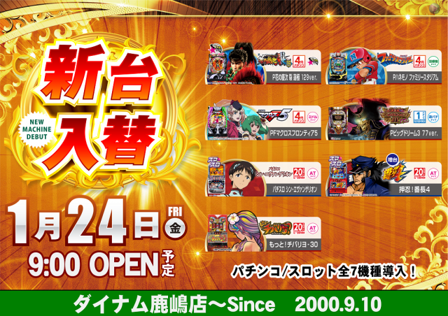 明日1/24(金)新台入替_「花の慶次 裂」全7機種導入!