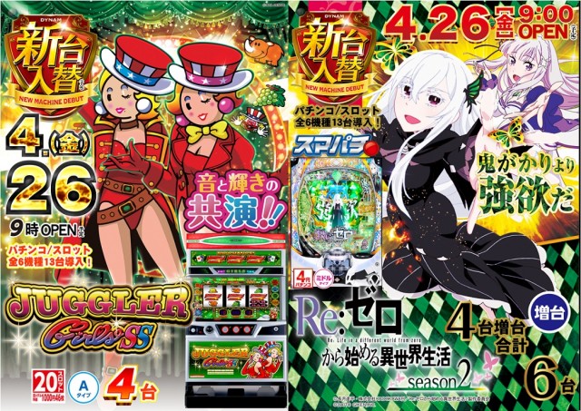 明日4月4日(木)茨城県ダイナム20店舗 9時開店予定!
