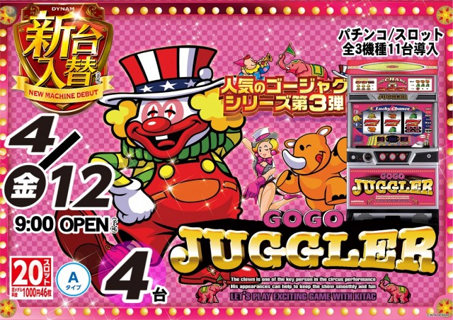 本日4/12(金)新台入替_ゴーゴージャグラー含む3機種導入