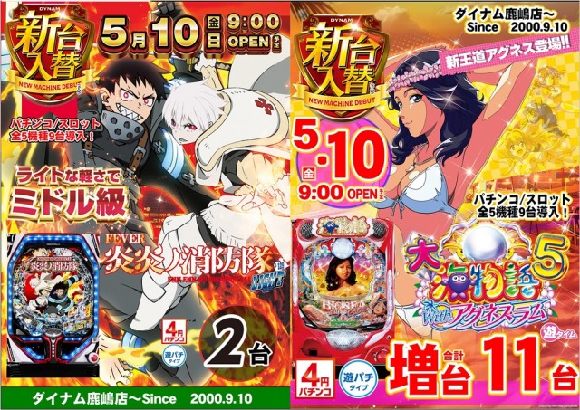 本日5/10(金)新台入替_遊パチ炎炎ノ消防隊含む5機種導入