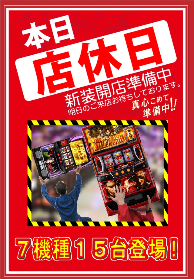 本日新装開店準備の為、店休とさせて頂きます。