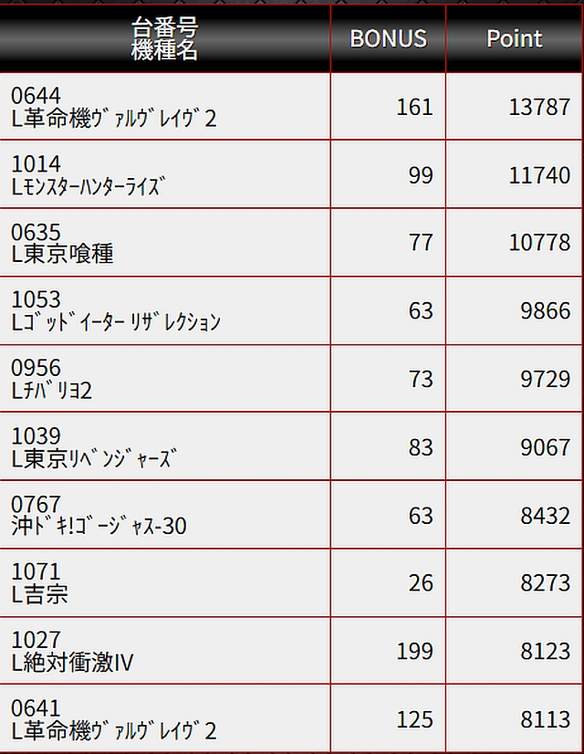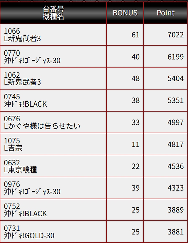1位 10月26日(日) 2位 10月16日(木) 3位 11月6日(木)