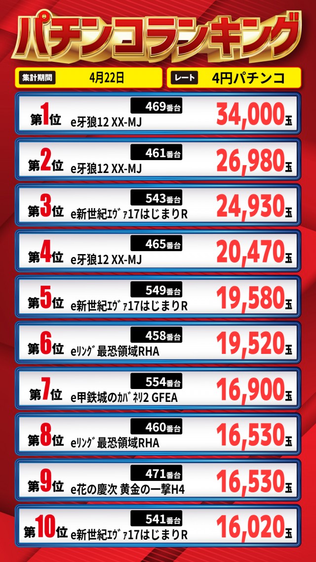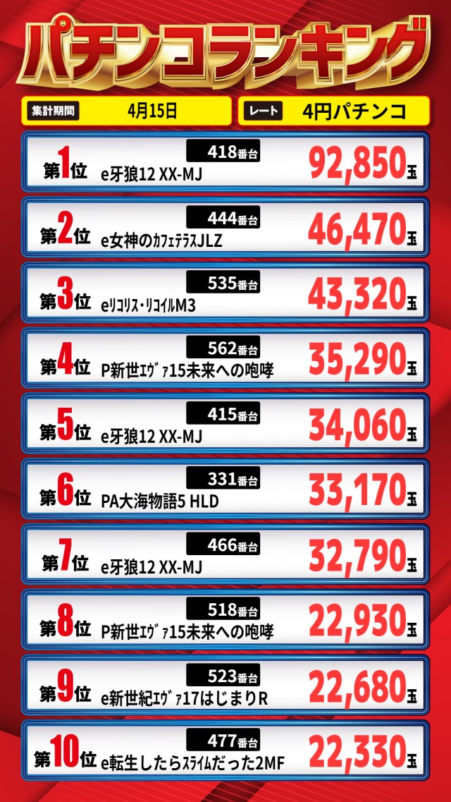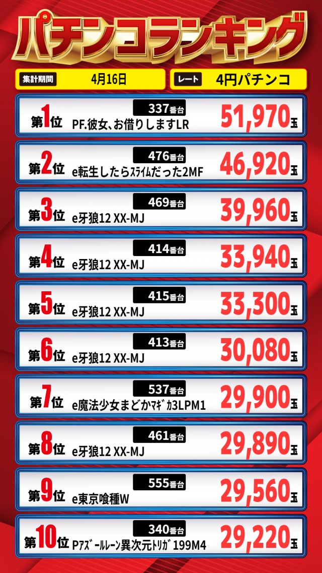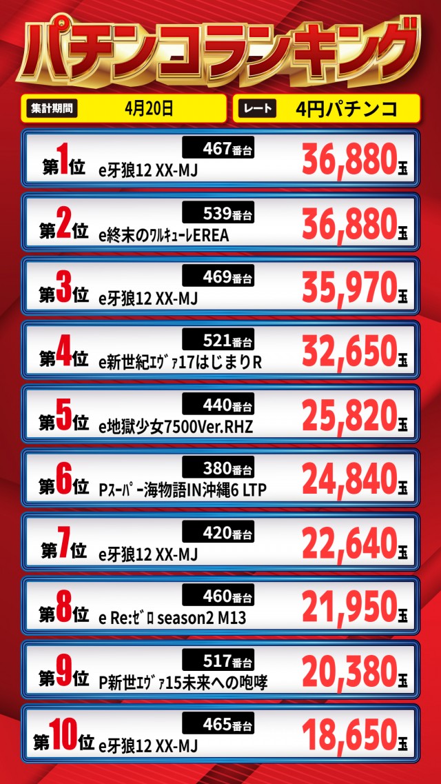 昨日のランキング