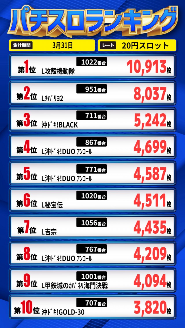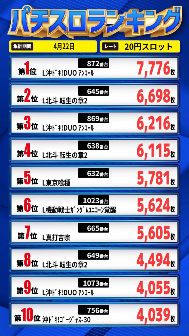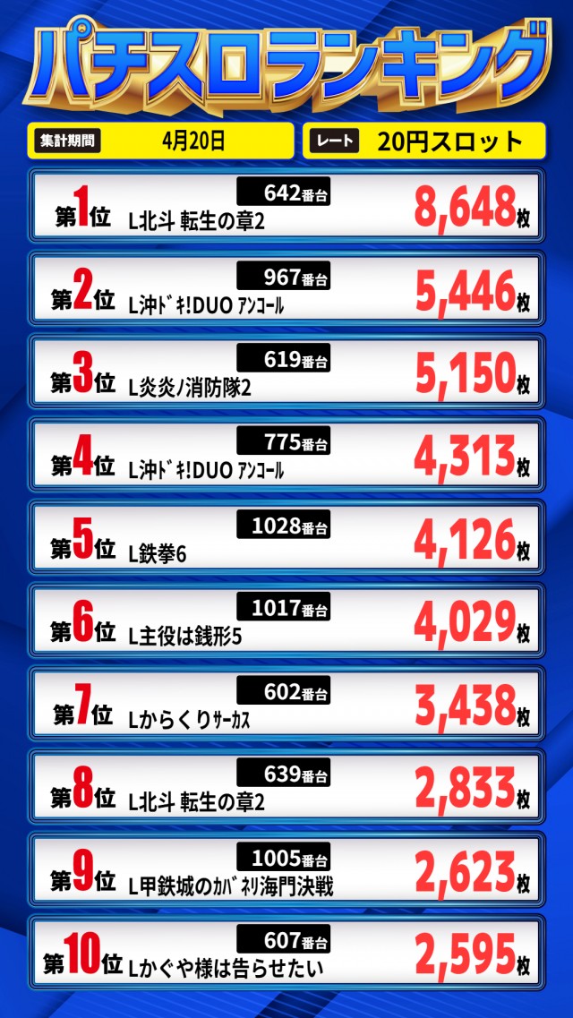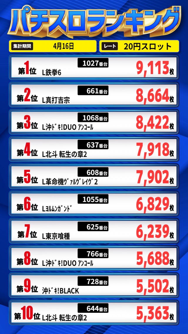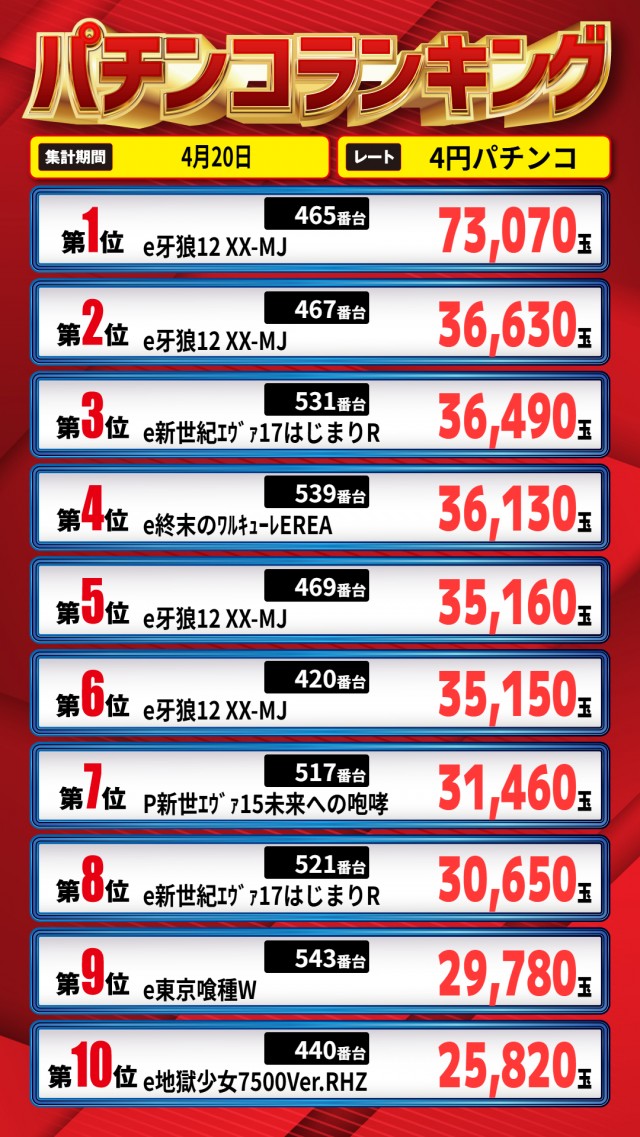 昨日のランキング