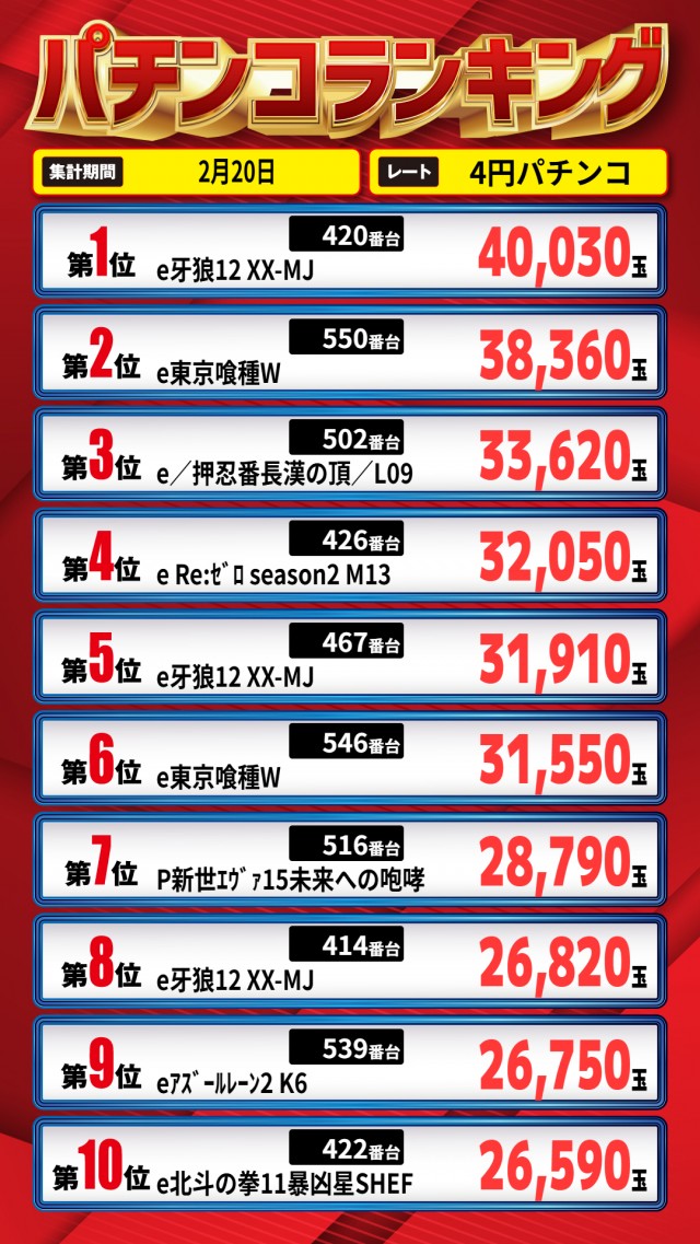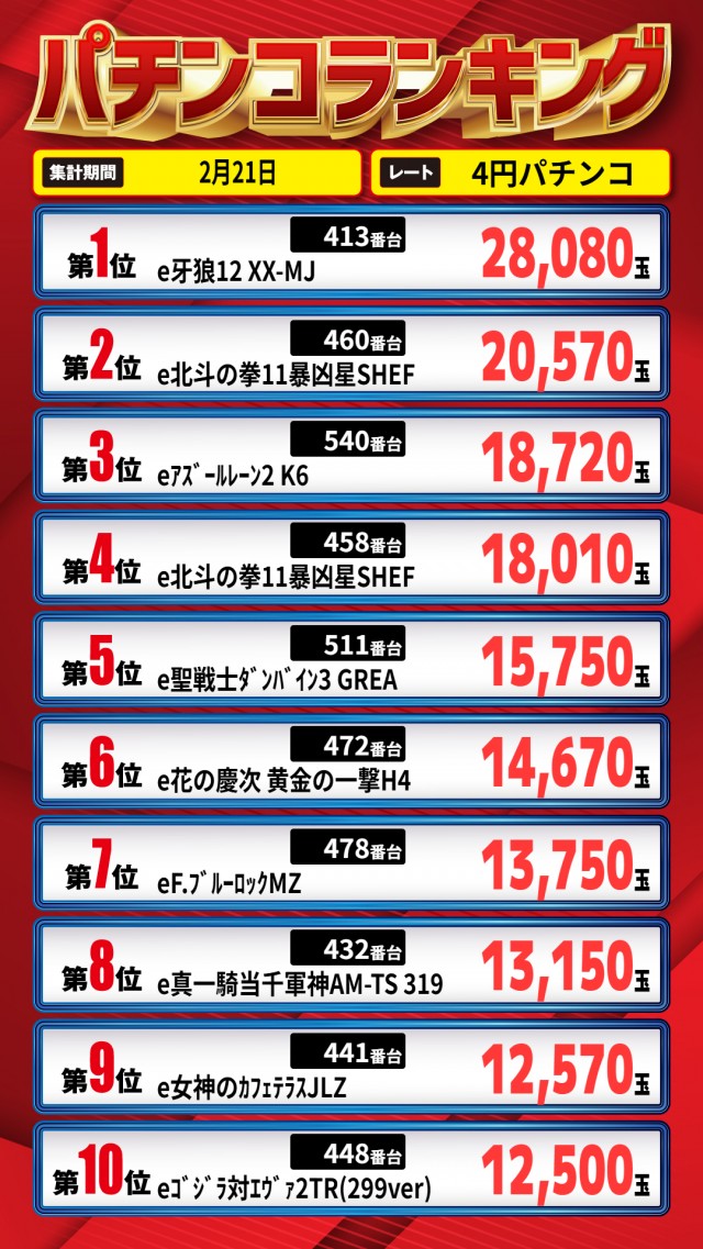 1位 2月3日(火) 2位 2月19日(木) 3位 2月9日(月)