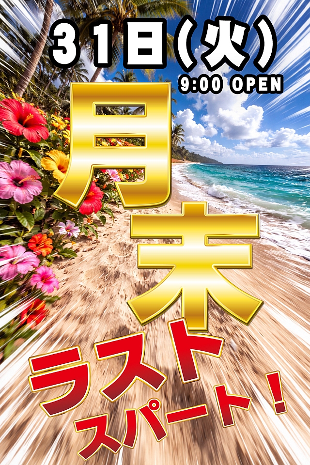 31日(火)💪月末ラストスパート💪9:00オープン!