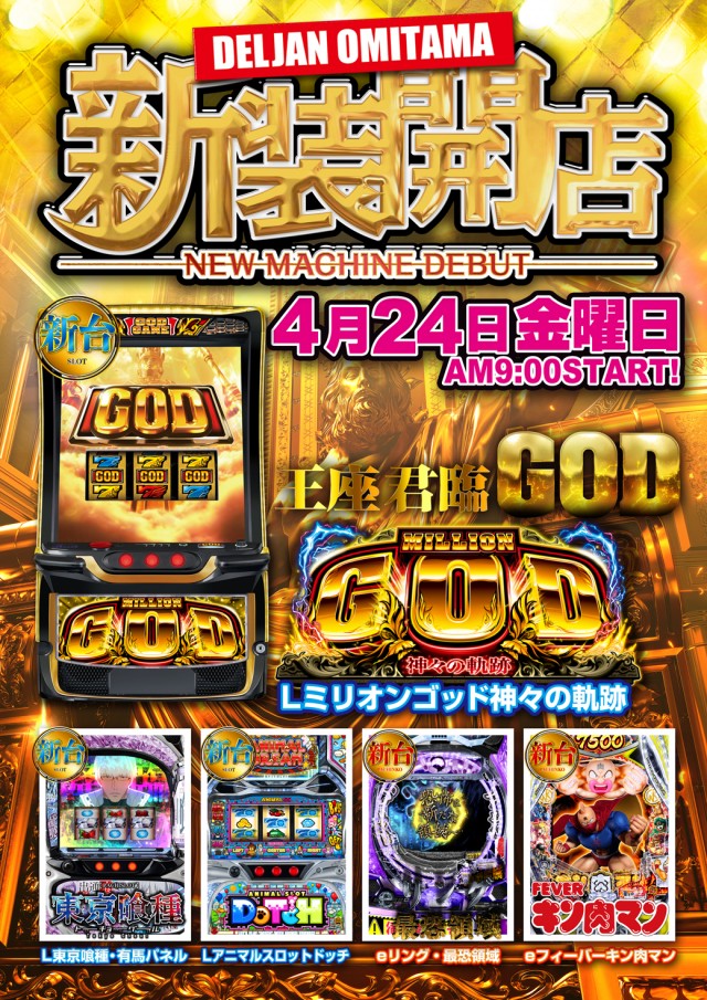 本日新装!Lミリオンゴッド・L東京喰種など導入❗