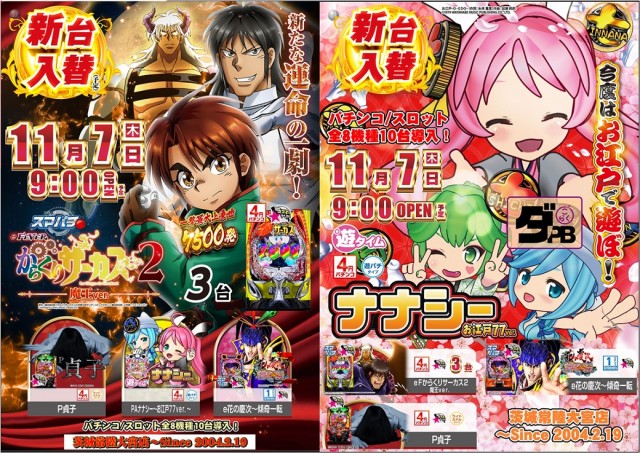 本日9/19(木)新台入替!全3機種導入!(予定)