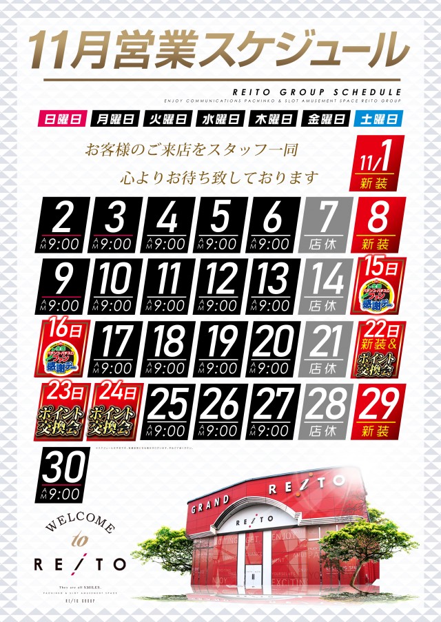 不定休(新台入替の前日、店休日となりますのでスケジュールをチェックしてください) |