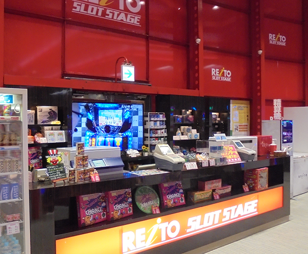 真っ白で大きな看板がとてもよく目立つなど、外観も特徴的なパチスロ専門店だ。