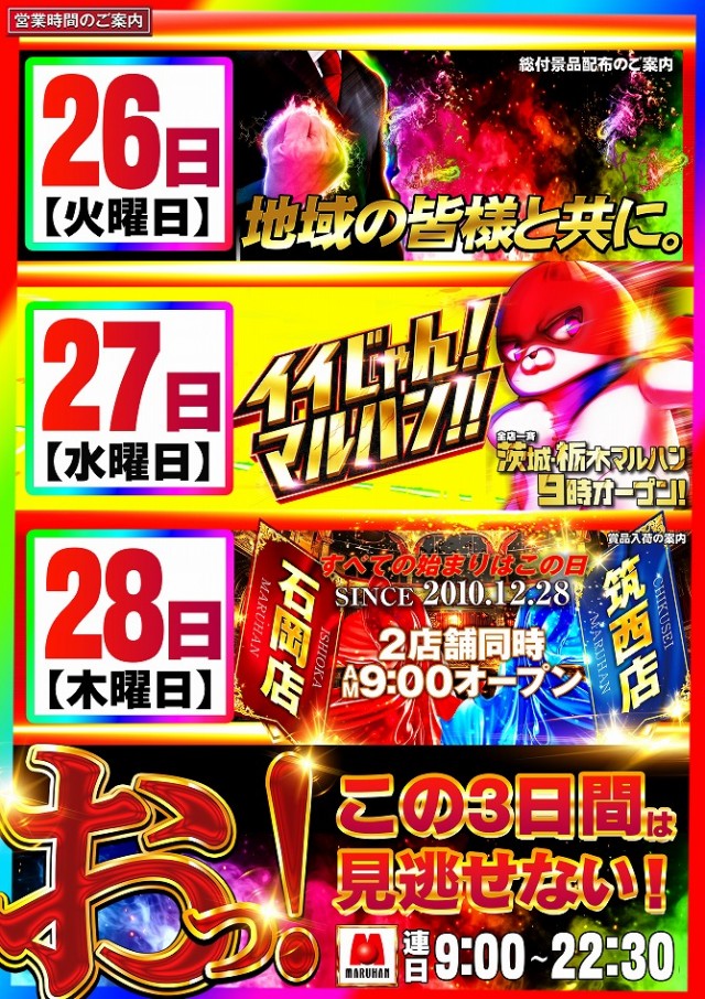 ★茨城栃木マルハン14店舗の新機軸★全店一斉9時開店‼