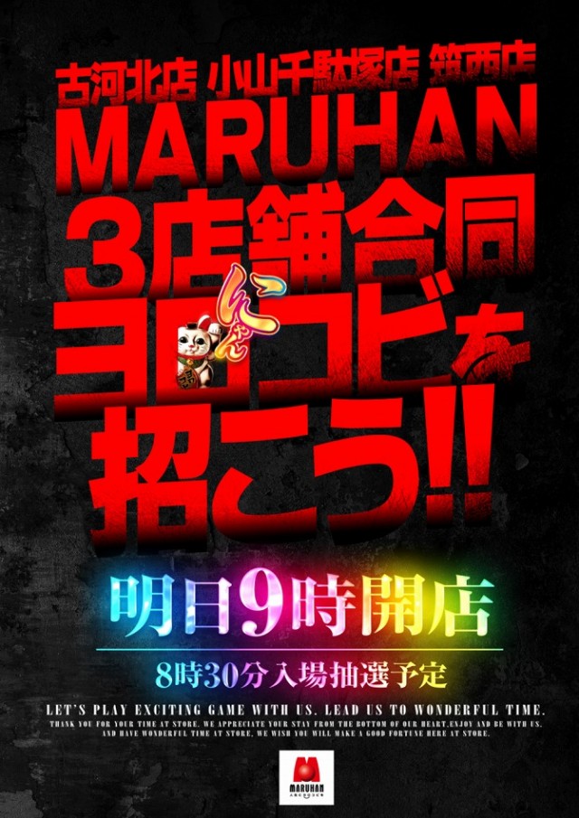 ★茨城栃木マルハン14店舗の新機軸★全店一斉9時開店‼