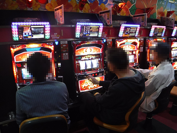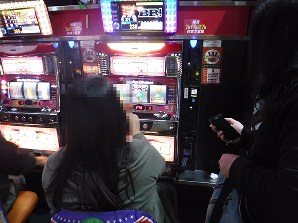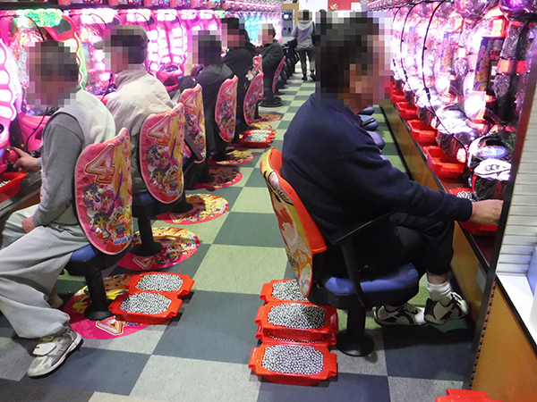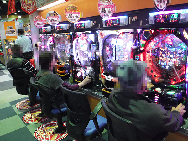 豊富な種類を取りそろえた1円パチンココーナーでも活気が感じられる場面も。なかには、友人同士でおしゃべりを楽しむなど仲睦まじい光景も見ることができた。