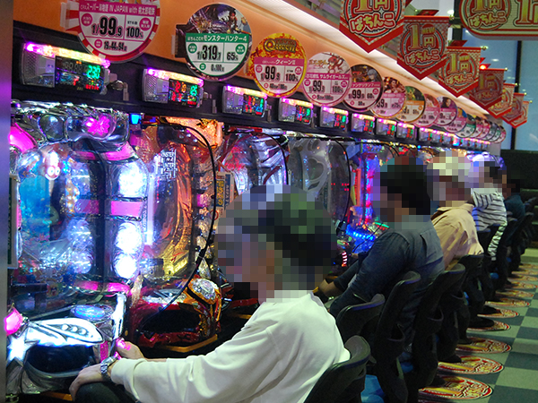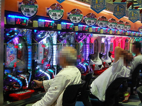 早速店内をのぞくと、大雨という生憎の天候でありながら、老若男女を問わずに多くのプレイヤーが集合。パチンコ・パチスロの各シマからにぎわいが感じられた。